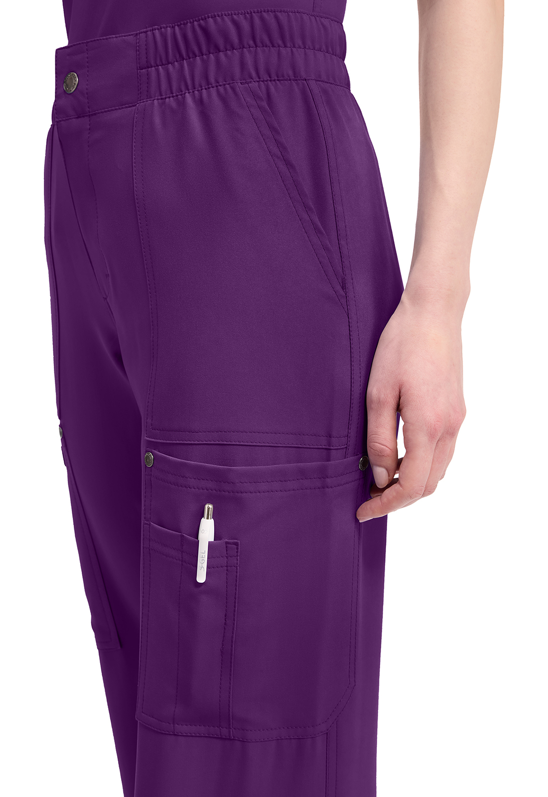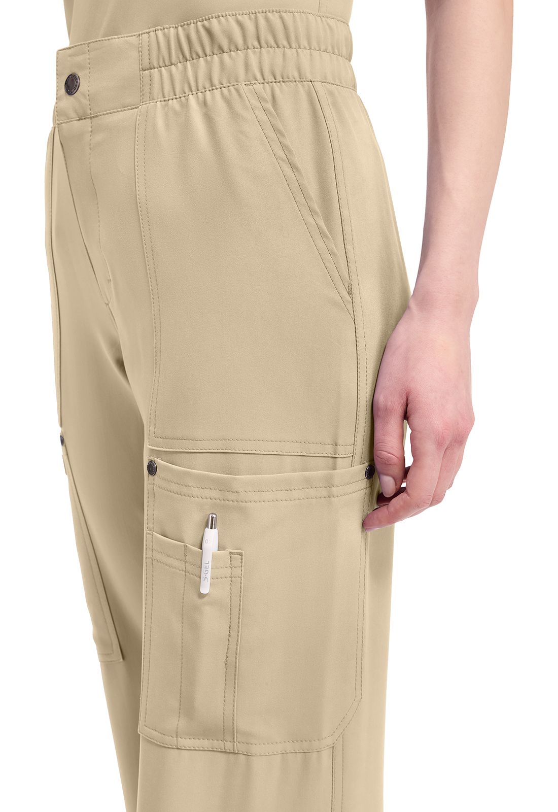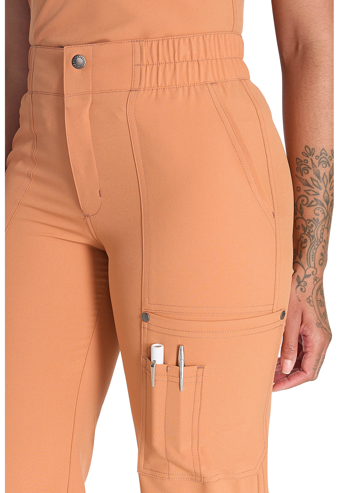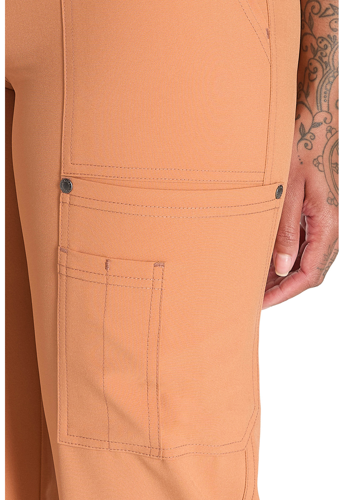 Мода и функциональность объединяются в этих брюках со средней посадкой современного кроя. Плоский передний пояс с многоигольной строчкой. Пояс усилен резинкой и включает внутренний шнурок с логотипом для надежности и регулировки. Гульфик на молнии с застежкой на кнопку с логотипом. Пять карманов для организованного хранения: два передних кармана, два накладных кармана с декоративными кнопками с логотипом на углах и держатель для инструментов с несколькими слотами, расположенный на левом накладном кармане. Декоративная отстрочка на всех швах для дополнительного украшения. Петля с логотипом на задней части пояса для быстрого подвешивания. Широкие штанины, ширина 50 см. Длина по внутреннему шву: 77 см.