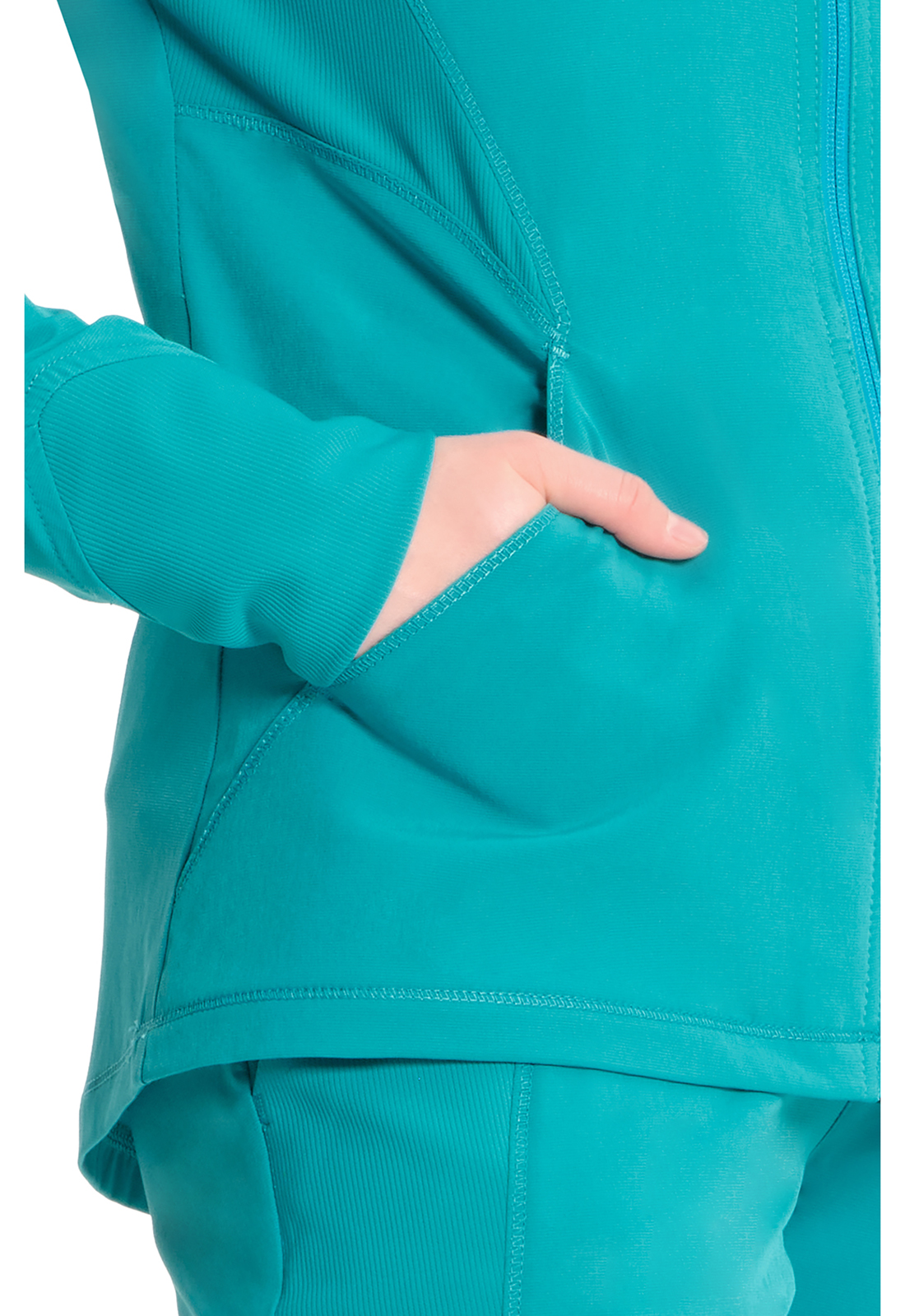 Стиль, подходящий как для работы, так и для выходных. Куртка современного кроя на молнии спереди имеет стоячий воротник и стилизованные кокеточные швы спереди и сзади. В наличии два боковых кармана в шве с фирменными контрастными сетчатыми мешками. Другие особенности включают трикотажные манжеты в тон, стилизованные боковые панели и центральную заднюю панель. Закругленный подол с удлинением сзади завершает образ. Длина по центру спинки: 67 см.