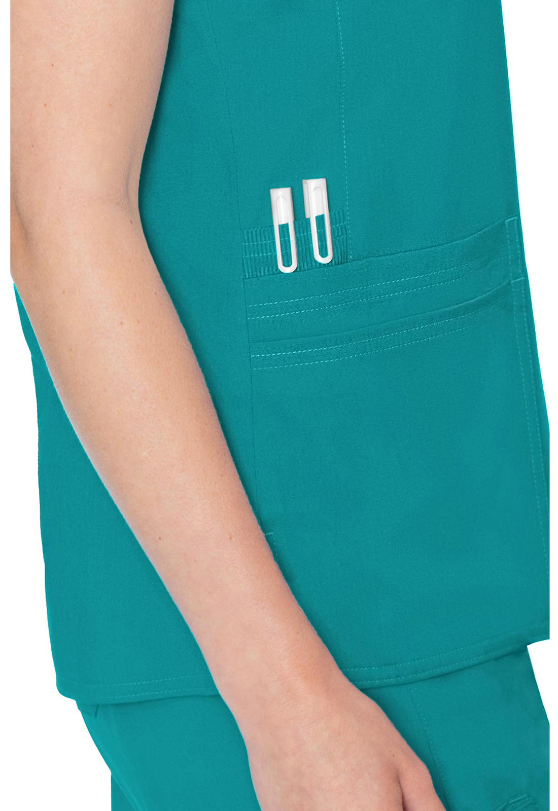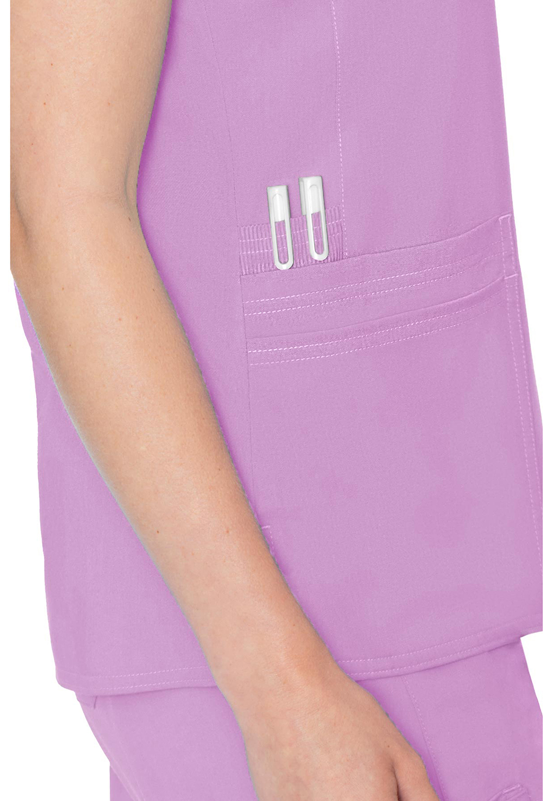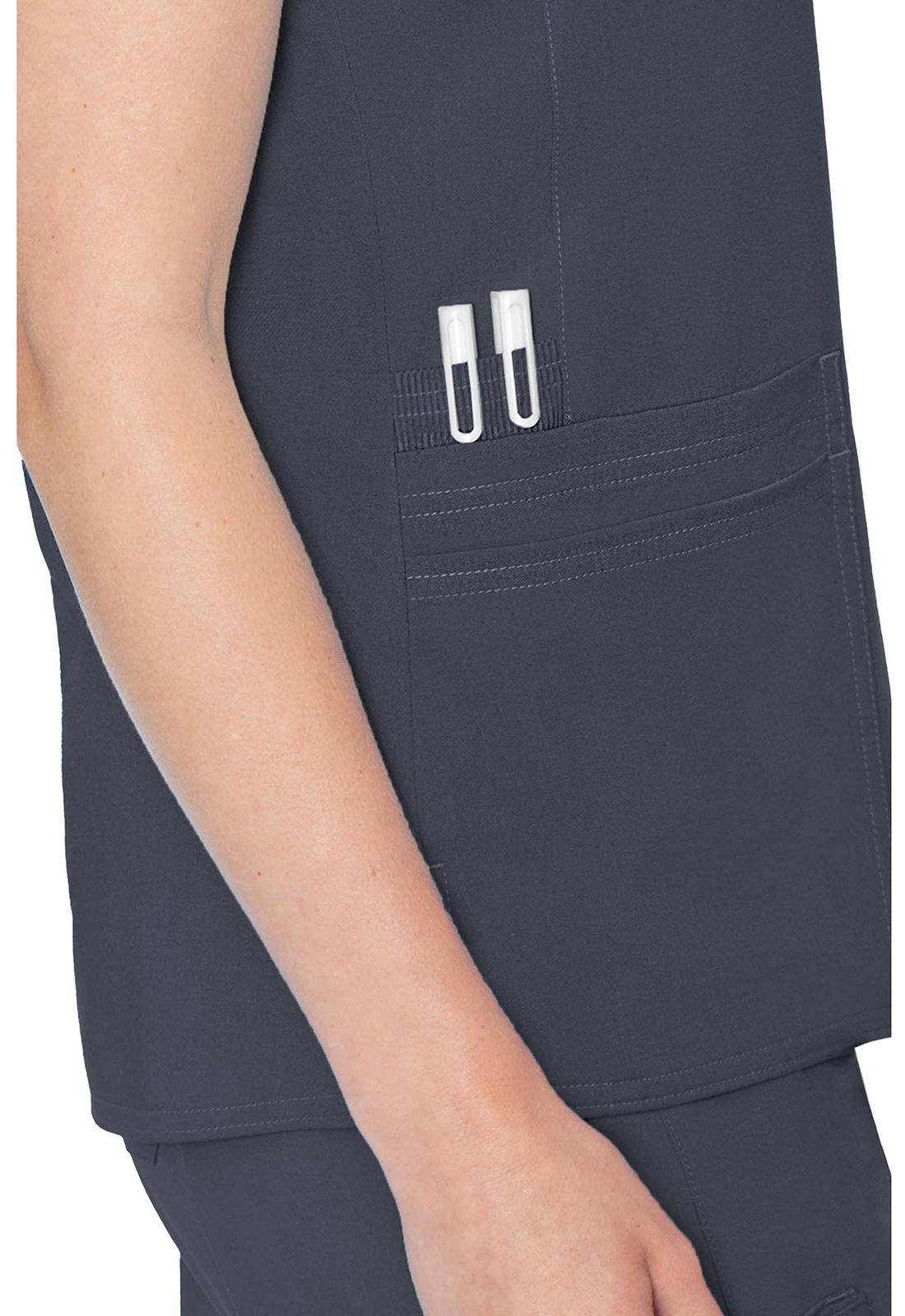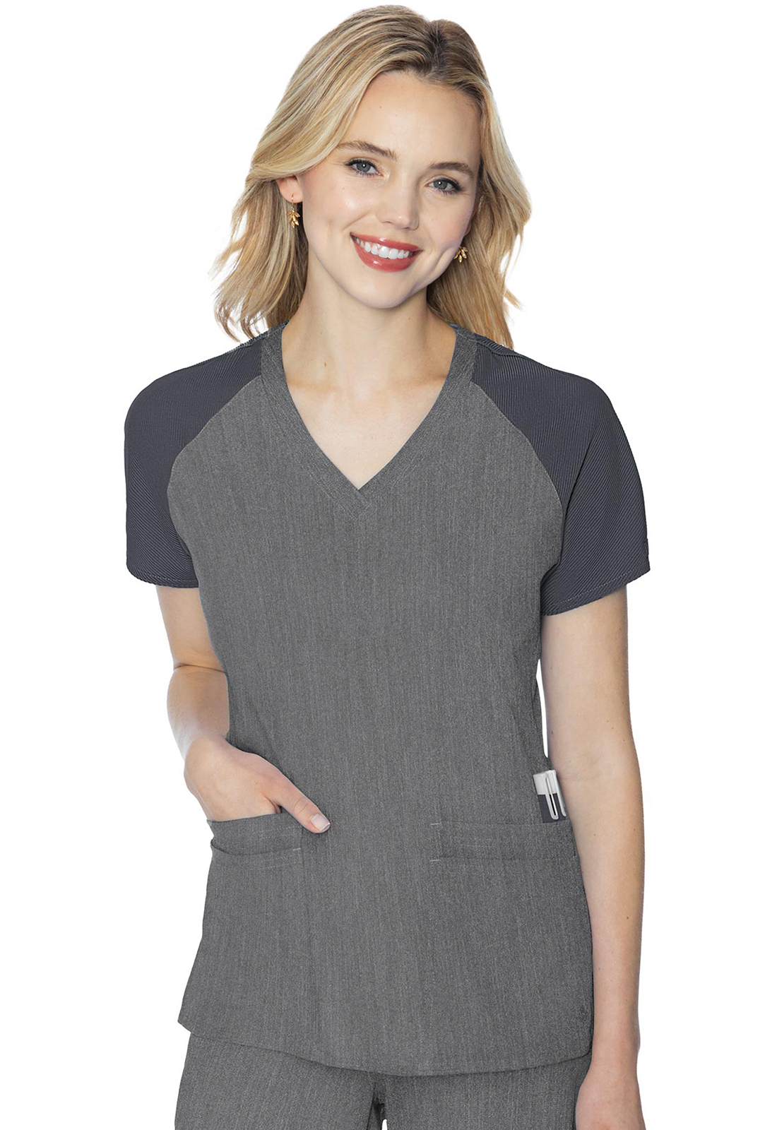 Comfortable and classic, this scrub top features a rib knit raglan sleeve and a ton of storage. Pair with the Touch Yoga pant for the perfect set. Missy fit. Center back length: 27".