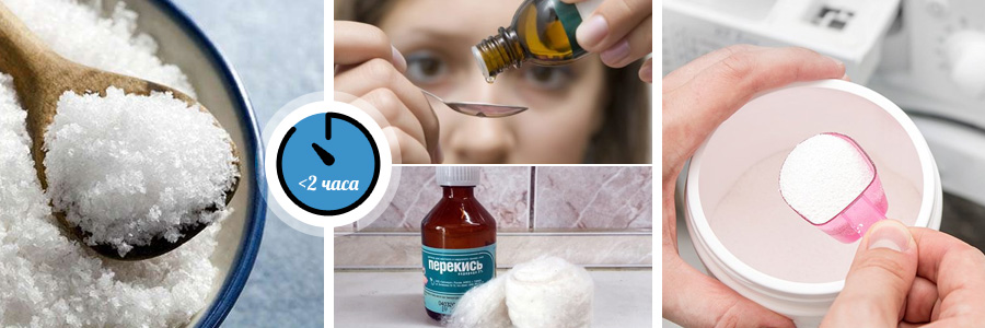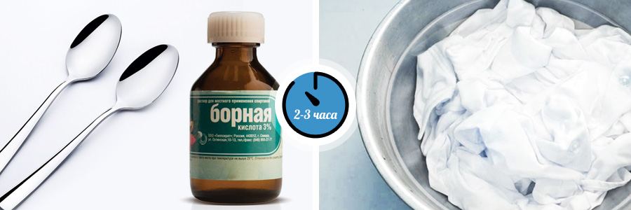 Как отбеливать: На два литра воды следует добавить 2-3 столовые ложки поваренной соли. Для сложных пятен можно добавить в раствор одну столовую ложку нашатырного спирта, стиральный порошок и три столовые ложки перекиси водорода.