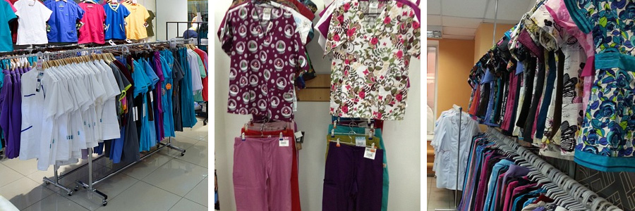 Американские дизайнеры создали невероятное разнообразие медицинских халатов, топов, брюк и аксессуаров. Фабрики США производят и классические белые, зеленые, голубые или розовые модели, так и одежду из ярких цветов, топы с рисунками, заклепками, орнаментами и другими необычными элементами. Над медицинской одеждой трудятся целые команды.