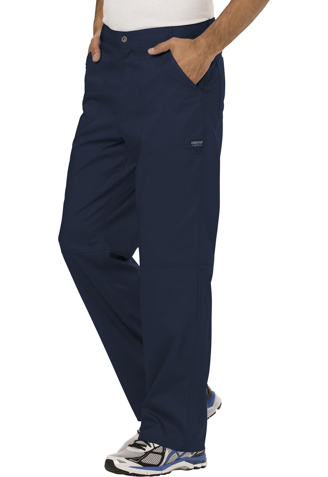 Качественная, правильно подобранная медицинская одежда – залог эффективности рабочего дня. В удобных брюках от бренда Cherokee работник лечебного учреждения будет чувствовать себя комфортно. Они не сковывают движения, идеально сидят на любом типе фигуры. Пояс этой модели выполнен как для классических брюк – с замком-молнией, пуговицей и шлёвками для продевания ремня. Изделие имеет 5 карманов, по которым можно разложить инструменты, лекарства, блокнот, ручку, телефон и другие необходимые в работе вещи. Брюки идеально подойдут мужчине, чей рост от 175 до 184 см.