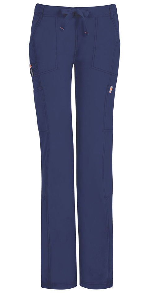 Брюки медицинские. Современный прямой покрой, низкая посадка, регулируемый шнурок и эластичный пояс . Спереди врезные карманы, грузовые карманы, сзади кокетка и один накладной карман. Также есть петли для инструмента в правом кармане. двойная отстрочка, передние рельефные швы.