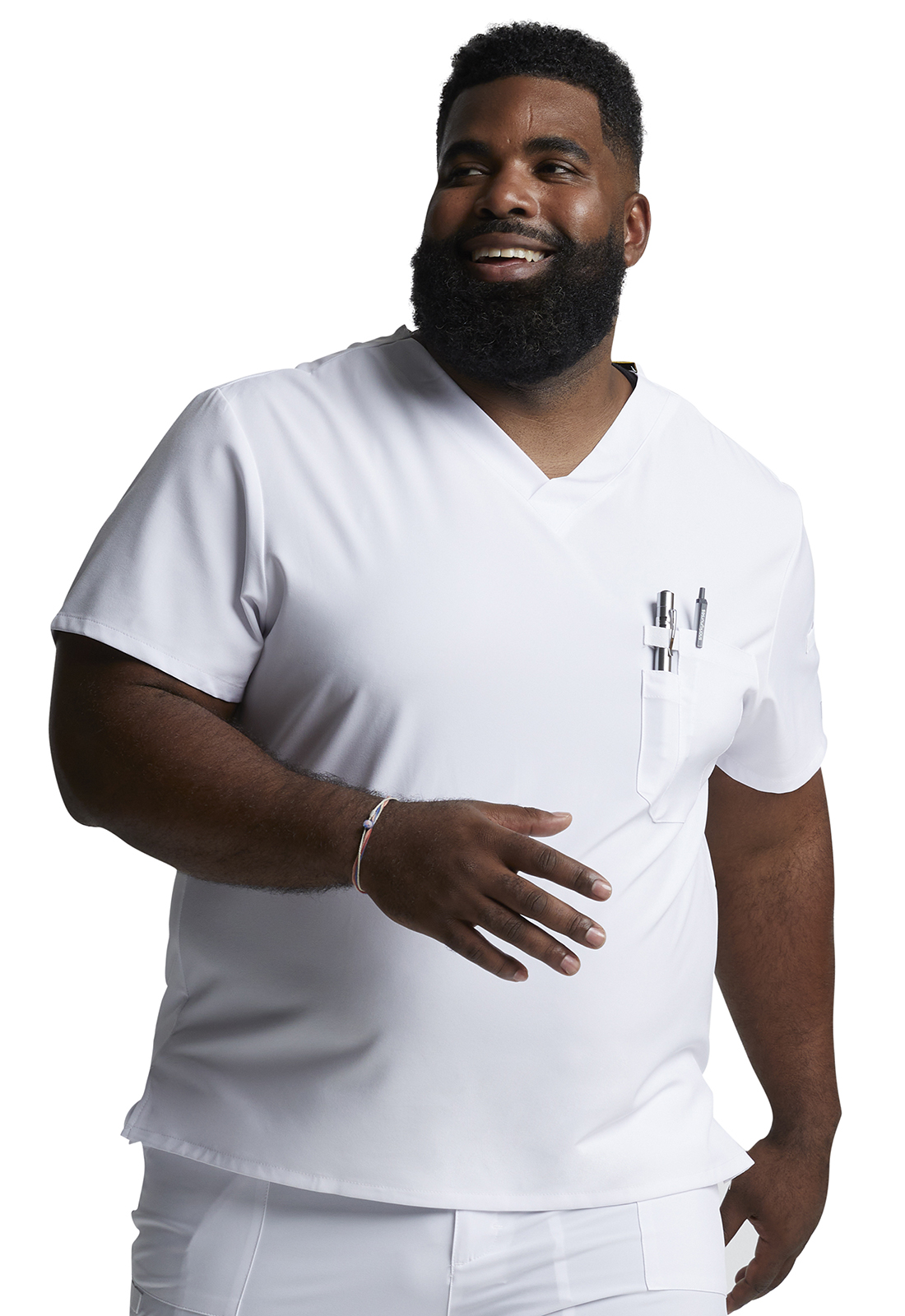 Это лаконичный медицинский топ с коротким рукавом и V-образным вырезом воротника, созданный в США. Модель предназначена для мужчин-медиков. Топ выполнен из качественной современной ткани, состоящей из полиэстера с пятипроцентной примесью спандекса. Материал отлично отстирывается и держит форму. Вы можете заказать изделие одного из десяти различных классических цветов. Производитель предлагает широкую линейку размеров — с XS по 2XL. Топ имеет нагрудный карман. Изделие удобно в носке и не сковывает движений, а ткань, из которой оно изготовлено, приятна на ощупь.