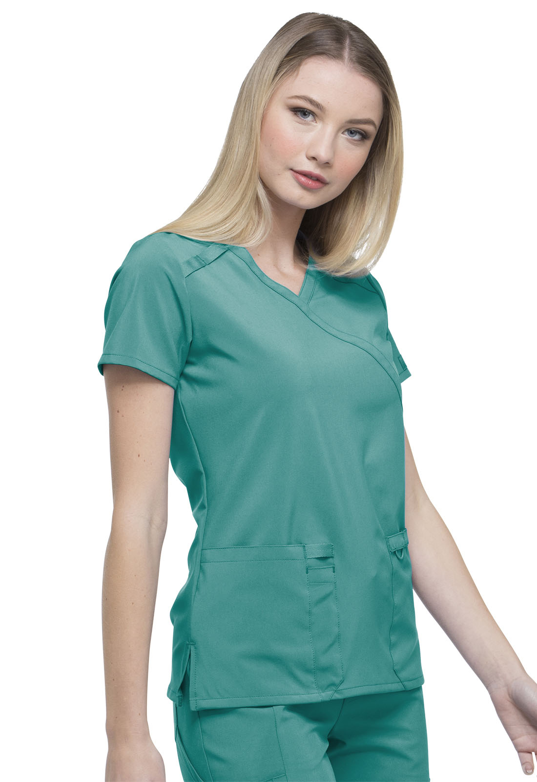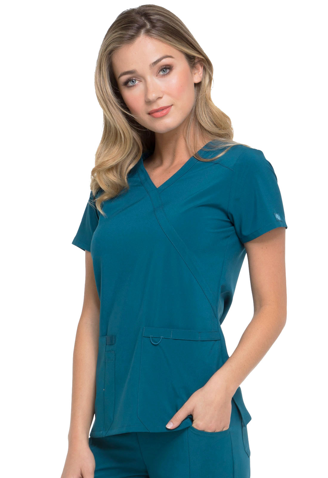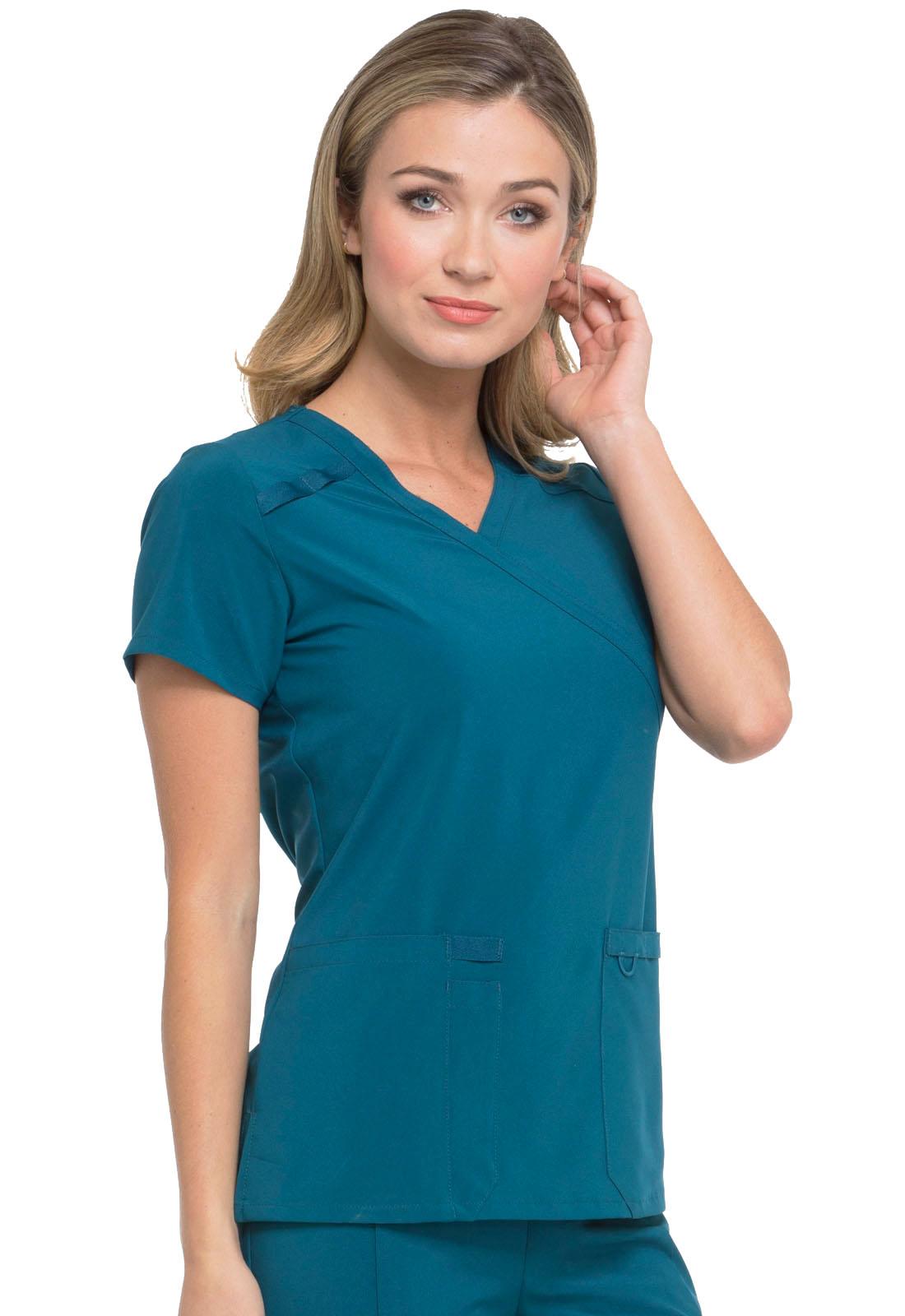 Этот простой однотонный женский топ Dickies из коллекции EDS Essentials имеет V-образный вырез и два удобных кармана в нижней части изделия. Модель имеет короткие рукава, а значит, идеальна для лета. Изделие смотрится стильно, но без излишеств — подойдёт для любого медицинского учреждения. Для заказа доступен широкий ассортимент цветов: множество холодных оттенков, бордовый, розовый, чёрный и белый. Представлены размеры от XXS до 2XL — медработница любой комплекции сможет подобрать нужный вариант. Топ не стесняет движений во время работы.