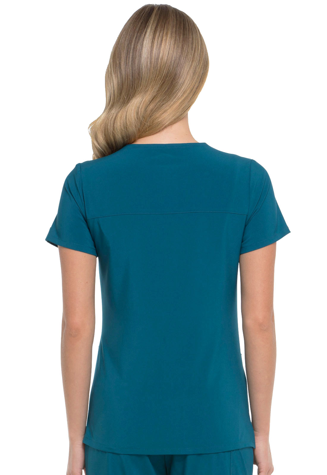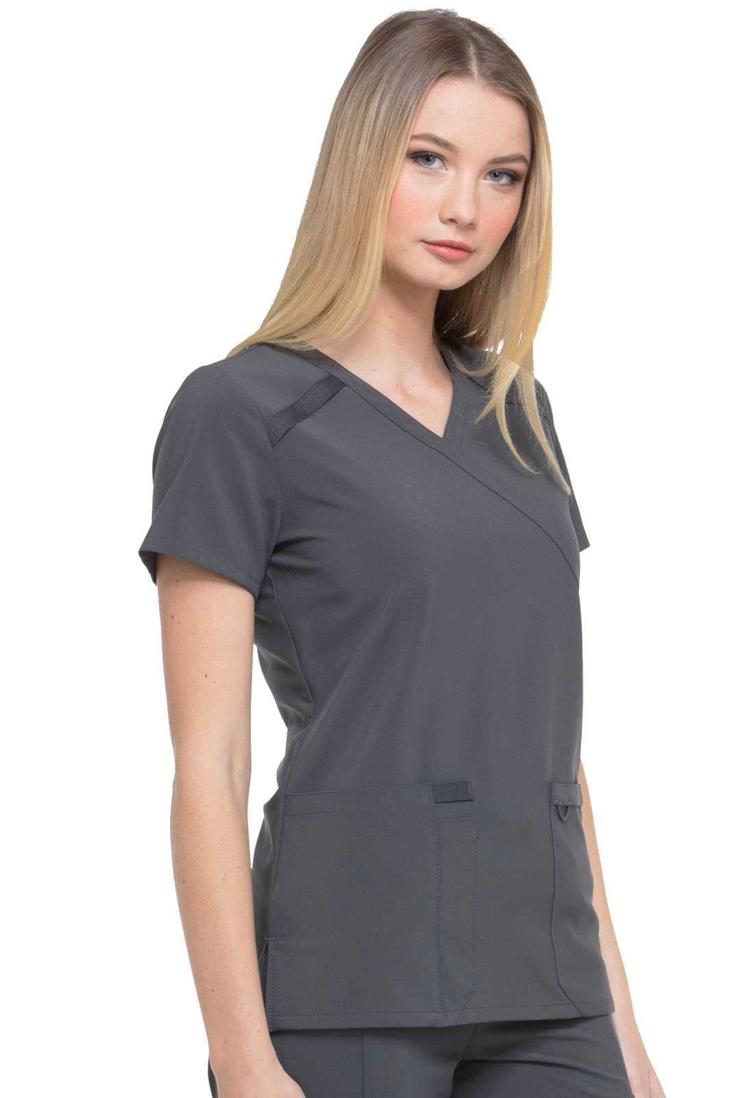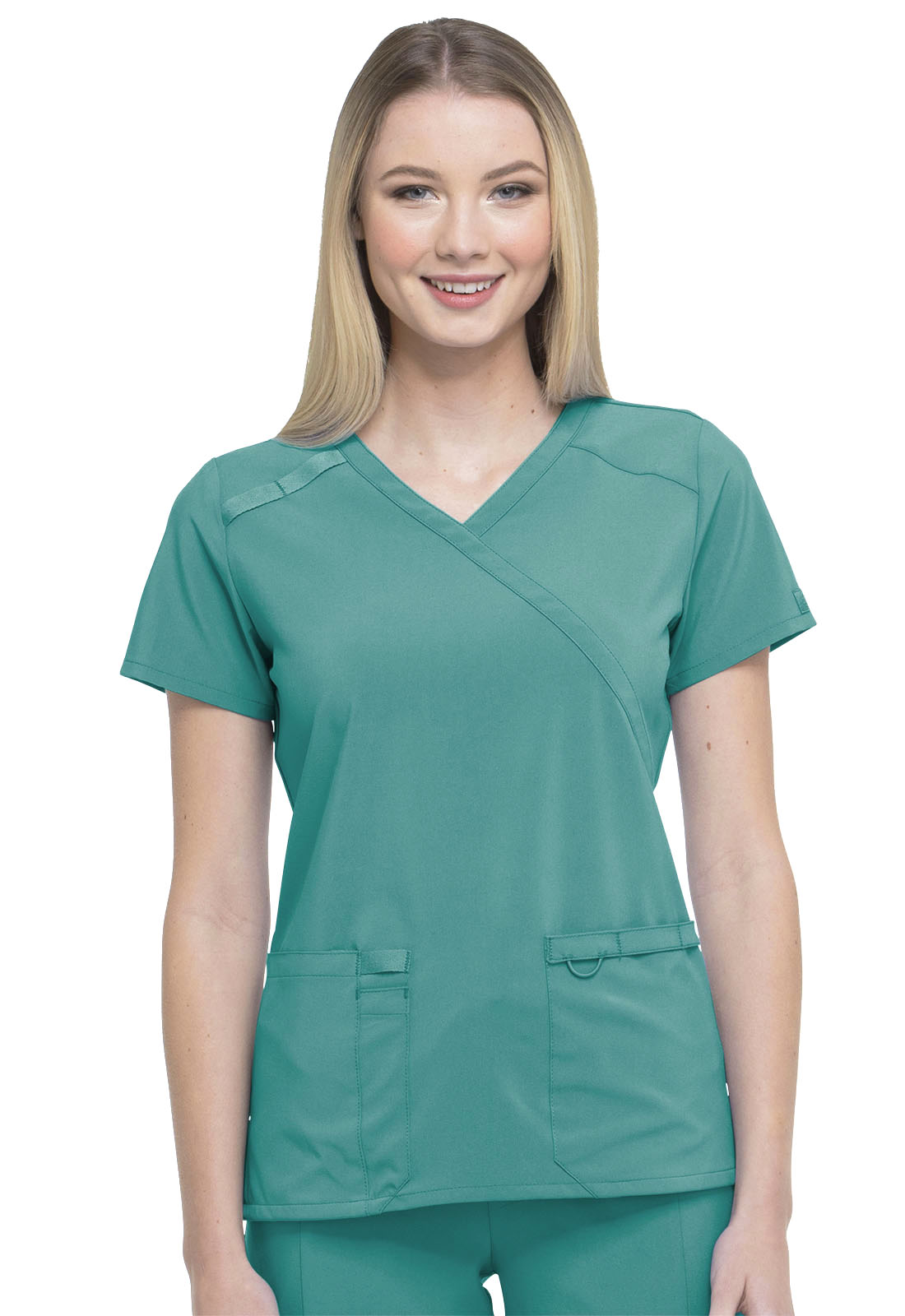 Этот простой однотонный женский топ Dickies из коллекции EDS Essentials имеет V-образный вырез и два удобных кармана в нижней части изделия. Модель имеет короткие рукава, а значит, идеальна для лета. Изделие смотрится стильно, но без излишеств — подойдёт для любого медицинского учреждения. Для заказа доступен широкий ассортимент цветов: множество холодных оттенков, бордовый, розовый, чёрный и белый. Представлены размеры от XXS до 2XL — медработница любой комплекции сможет подобрать нужный вариант. Топ не стесняет движений во время работы.