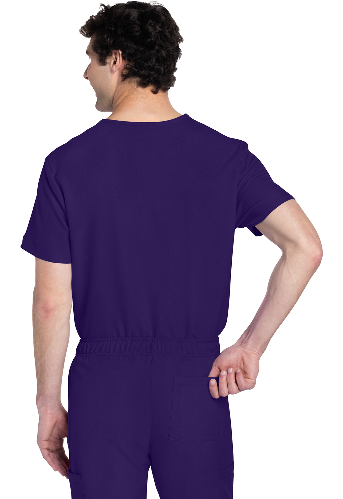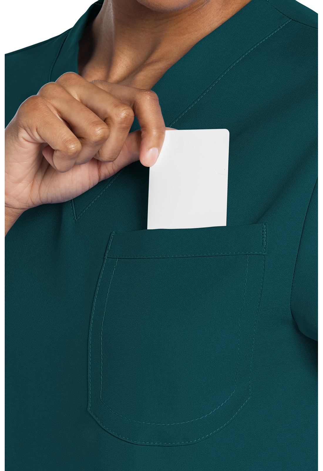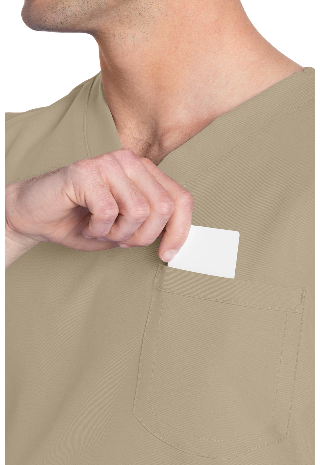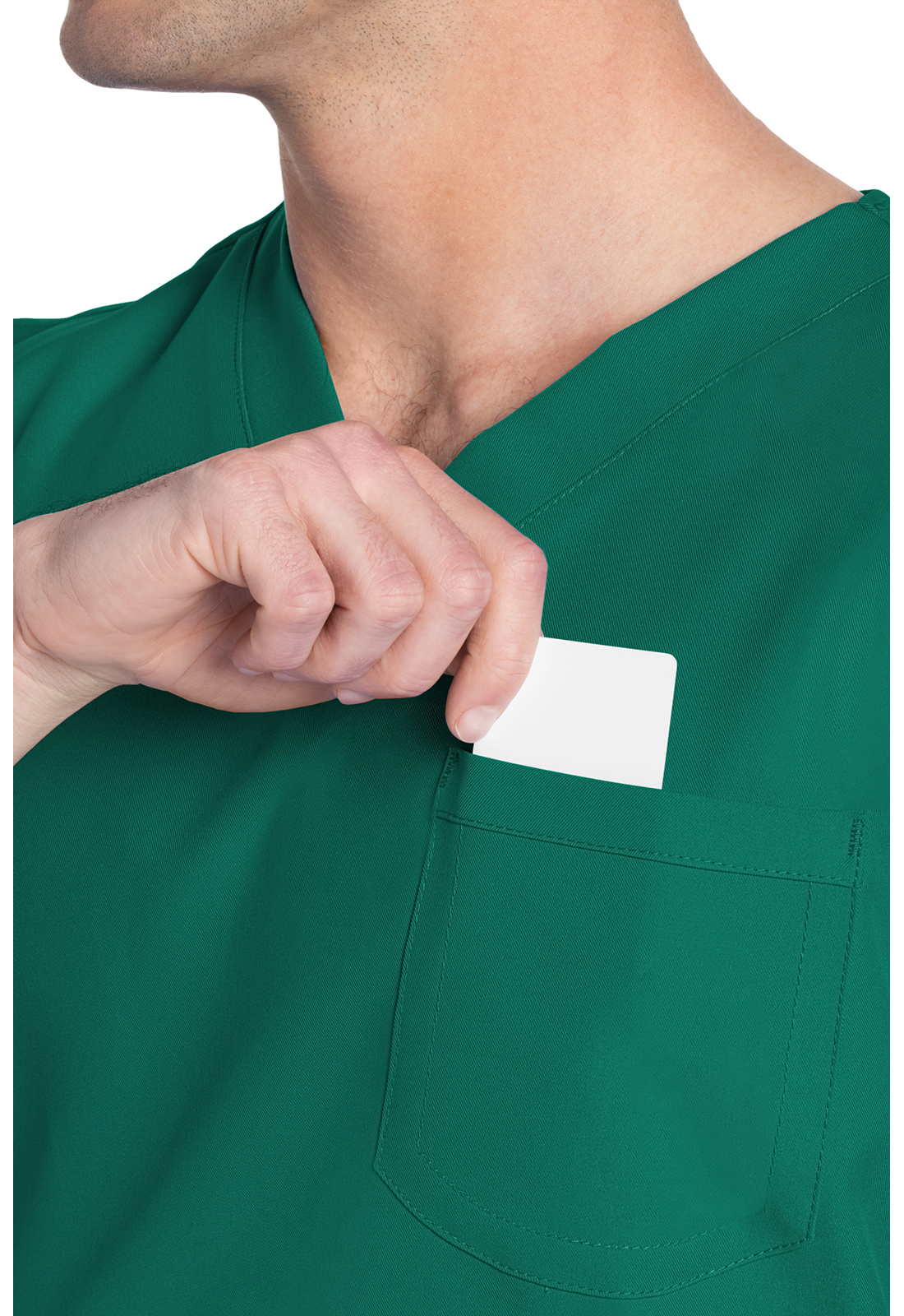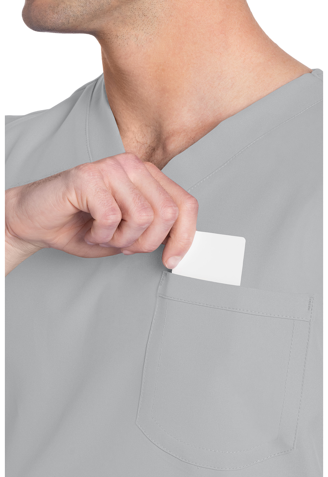 Этот топ унисекс с V-образным вырезом предлагает классический стиль без гендерных различий. Нагрудный накладной карман с отделкой обратным подгибом. Декоративная однотонная строчка. Длина по центру спинки: 71 см.